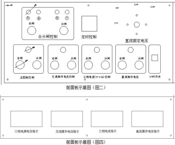 二、高低壓開(kāi)關(guān)柜通電試驗(yàn)臺(tái)面板示意圖