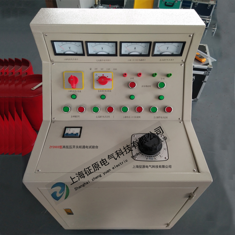 ZY2003型高低壓開(kāi)關(guān)柜通電試驗(yàn)臺(tái)用于高低壓開(kāi)關(guān)柜生產(chǎn)廠家對(duì)所生產(chǎn)的高低壓開(kāi)關(guān)柜進(jìn)行出廠前的各項(xiàng)通電試驗(yàn)。它能提供各種交、直流電源,便于對(duì)開(kāi)關(guān)柜的檢測(cè),提高工作效率。