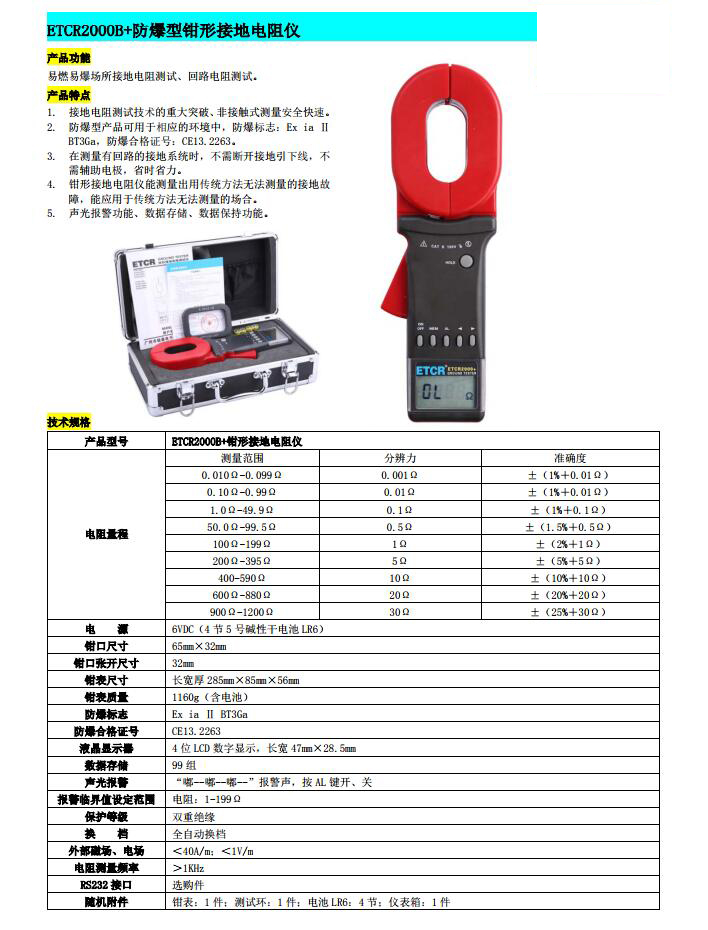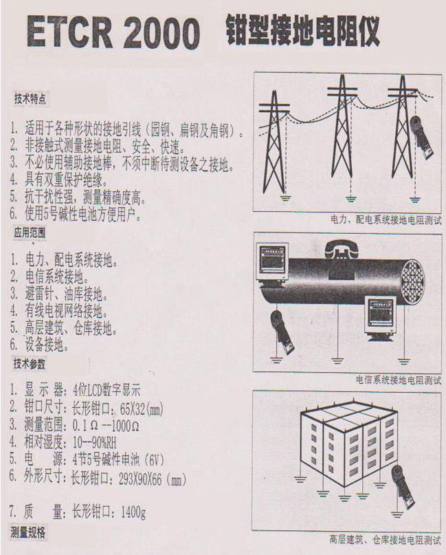 ETCR2000型鉗形接地電阻測試儀是傳統(tǒng)接地電阻測量技術(shù)的重大突破,廣泛應(yīng)用于電力、電信、氣象、油田、建筑及工業(yè)電氣設(shè)備的接地電阻測量。